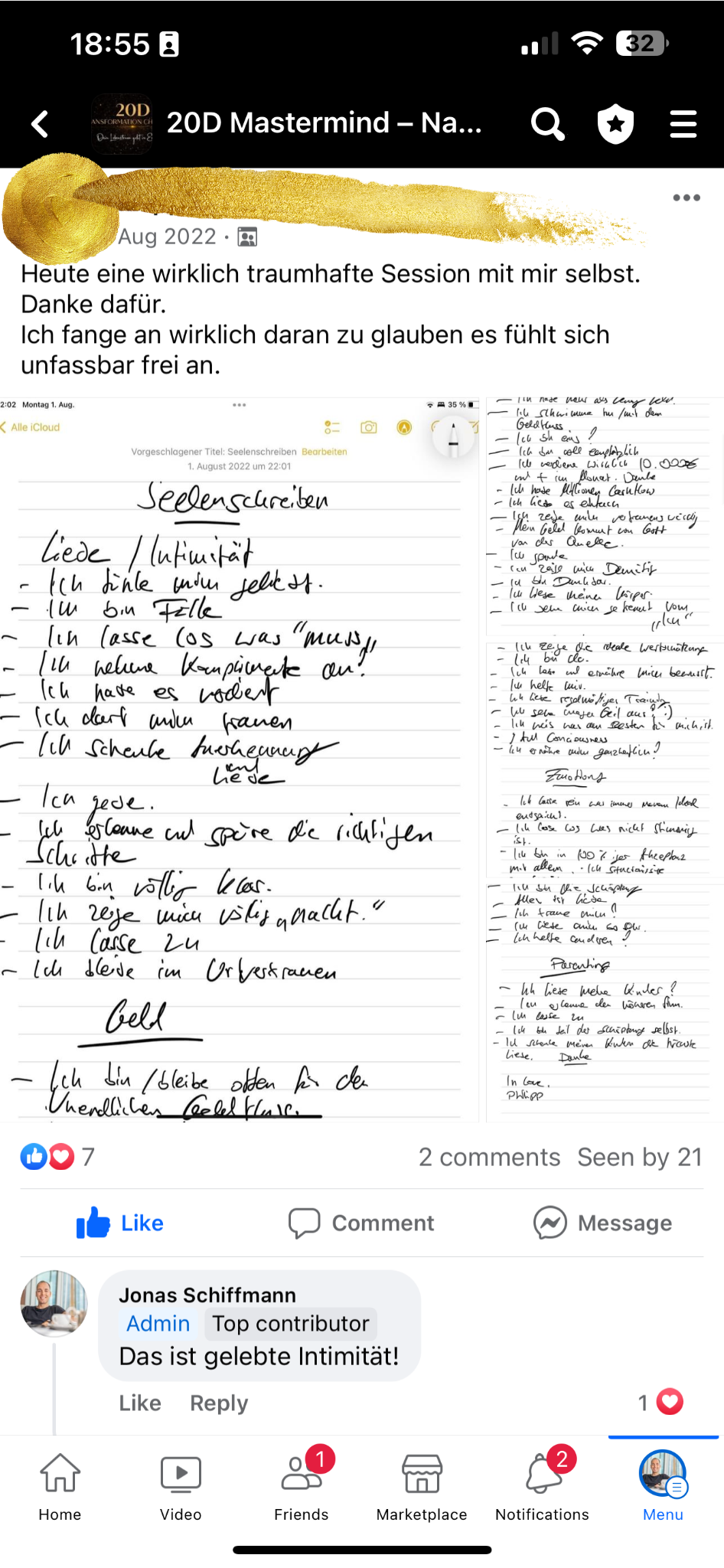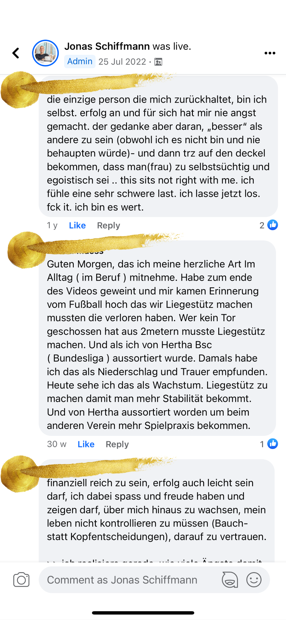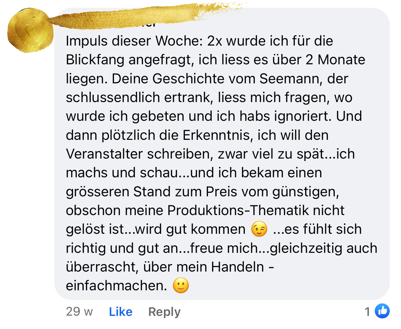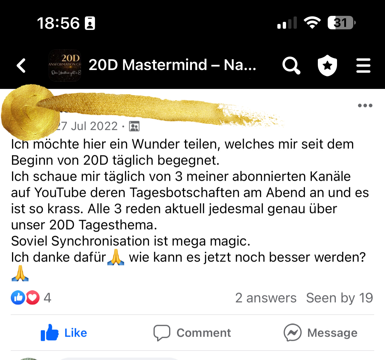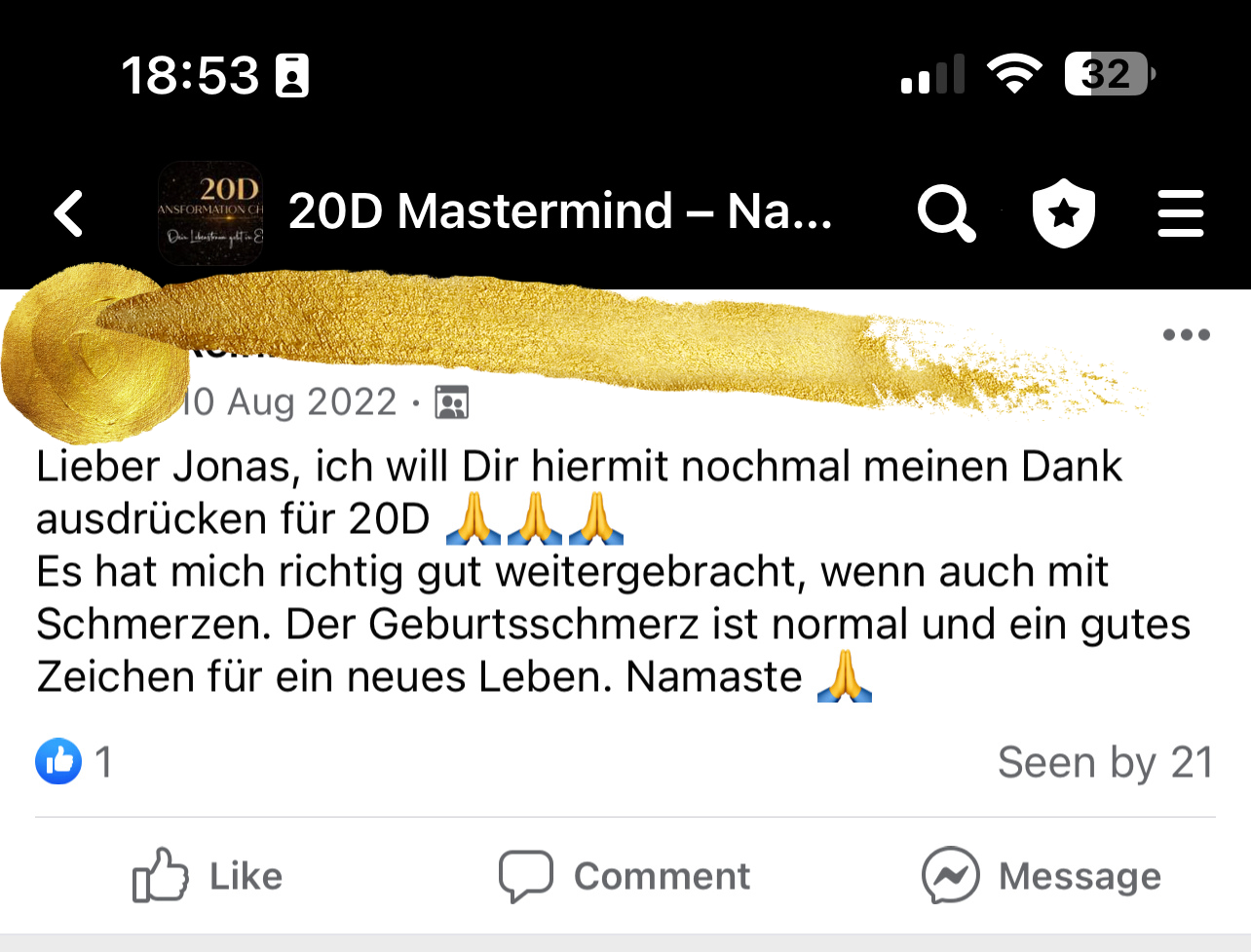 „In nur 20 Tagen intensiver Selbstarbeit habe ich enorm an Selbstvertrauen gewonnen und eine Fülle neuer Business-Ideen entwickelt. Diese Zeit ermöglichte mir, meine Zielgruppe klar zu identifizieren und bedeutende Vergebungsarbeit für meine Vergangenheit zu leisten. Ich habe tiefgehende Einsichten zum Thema Geld gewonnen und lang unterdrückte Emotionen endlich freigesetzt. Das Ergebnis? Direkt nach dem Programm gewann ich meine ersten bezahlten Kunden für mein neues Herzbusiness. Ich bin unendlich dankbar für diese transformative Erfahrung und für den wertvollen Input. Herzlichen Dank! ❤️🔑“