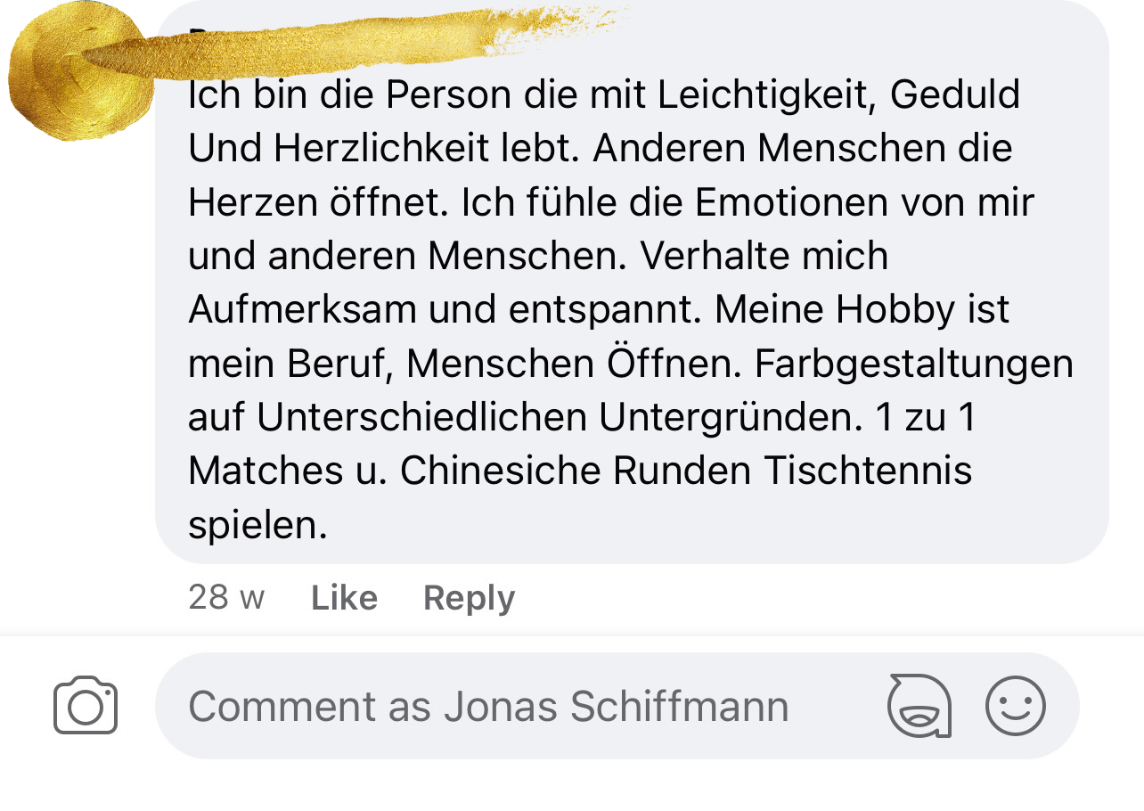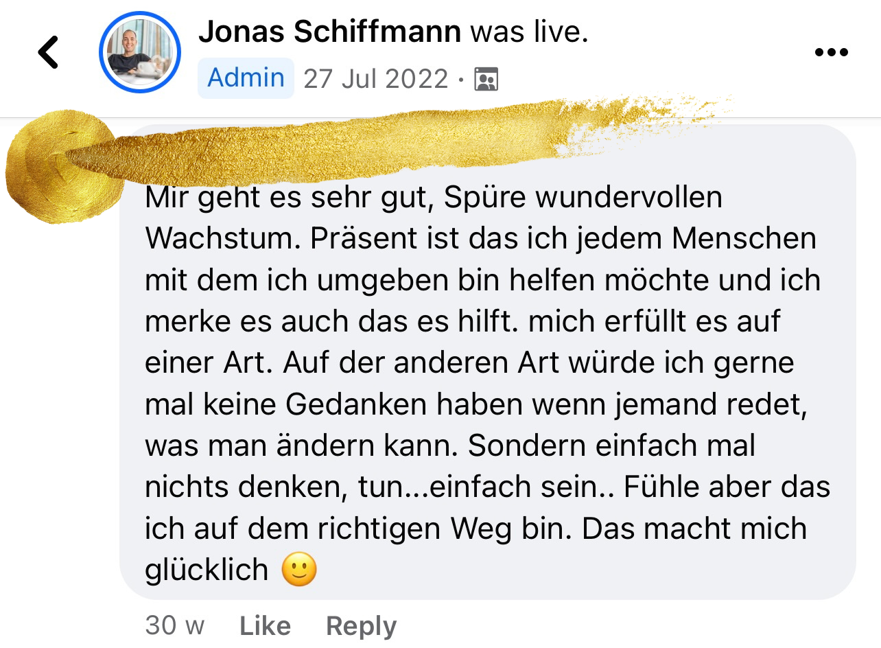 Jonas sagt, dass alles veränderbar ist. In seiner Welt darf Transformation und Veränderung leicht und einfach sein und Spaß und Freude bereiten. Aus dem Huste in die Leichtigkeit.